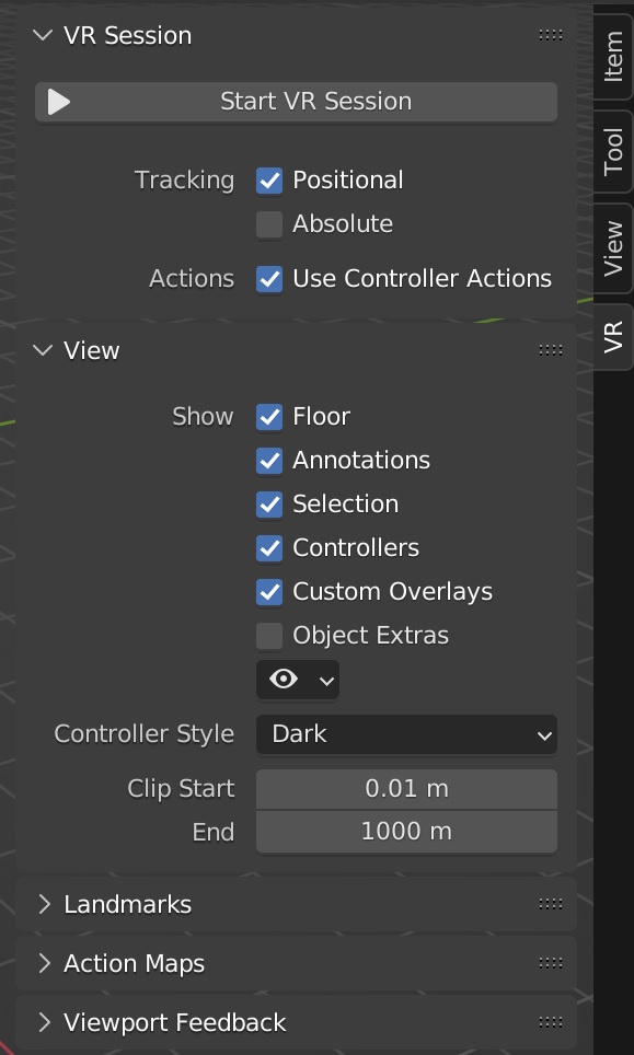 Blender 中的 VR 支持基于 OpenXR 规范,需要一些设置步骤。这些在头戴式显示器 (HMD) 部分有解释。