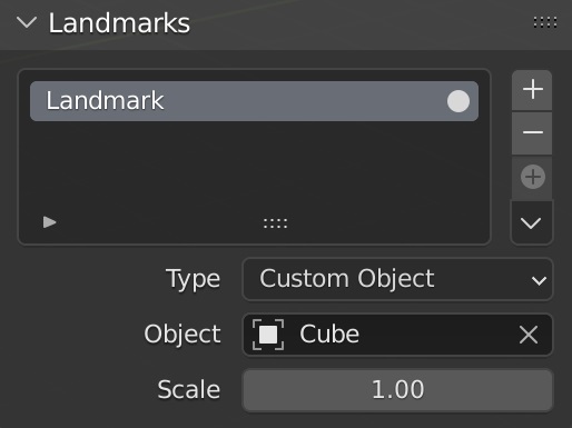 地标用于为虚拟空间中的查看者存储可重用的基本姿势(位置和旋转)。此外,还可以为自定义对象和自定义姿势类型的地标设置基本查看器参考比例。