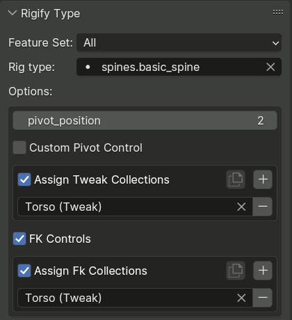 想要完全控制,你可以进入姿态模式使用骨骼属性中的 Rigify类型 面板,子骨骼类型可以随意分配,只要更改选项即可。
