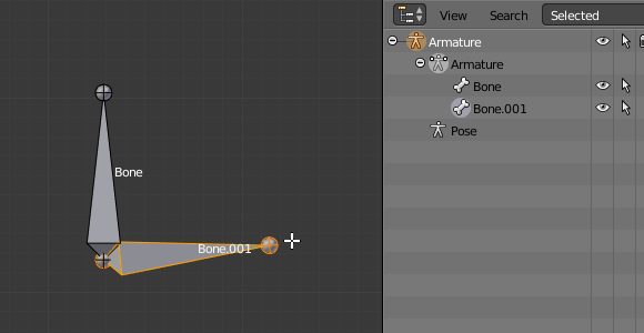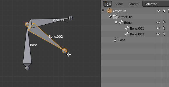 新骨骼的父节点 是 连接到骨骼本身的激活根部(检查图中的大纲图. Ctrl-当活动元素是连接的根时单击。)。