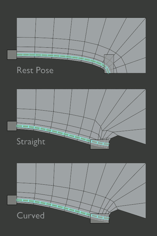 Straight vs Curved vertex mapping on a B-Bone with a strongly curved rest pose.¶