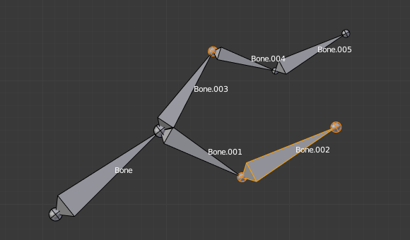 "Bone.003" 的尾端(同是它也是 Bone.004 的根部)被取消了选择。