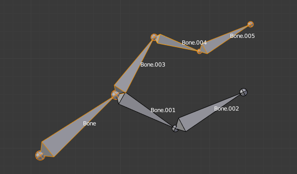 "Bone" 是 "Bone.003" 的父本。因此,"Bone.003" 的根与 "Bone" 的顶端相同。由于 "Bone" 仍然被选中,它的顶端也被选中。因此,"Bone.003" 的根部仍然被选中。