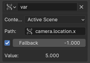 If enabled, allows specifying a fallback value to use as the variable value if the RNA Path cannot be resolved, instead of causing a driver evaluation failure. For more info see Context Property below.