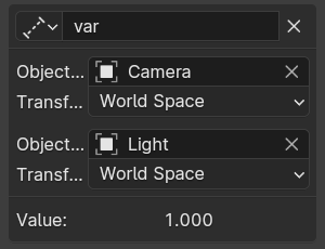 变量可以是物体单个属性、变换通道(位置缩放等信息)、两个物体的旋转角度差值、两个物体的距离。