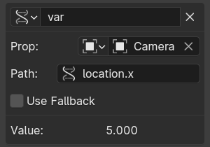 camera.location.xorcamera.location[0]for the camera X location animation channel value (before parenting or constraints), or["prop_name"]for a custom property.- 回退