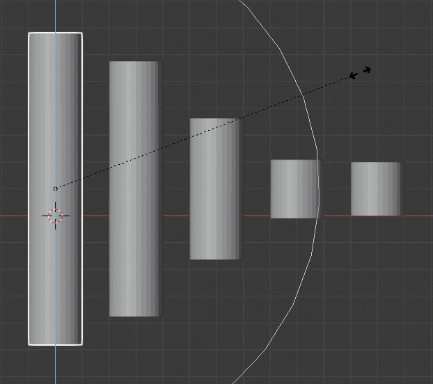 在下图中,最左边的圆柱体被垂直放大,这也影响到其附近的圆柱体。