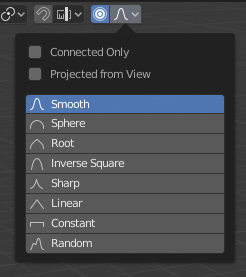 衰减编辑通常在 编辑模式 中使用,但也可以在 物体模式 中使用,此时该工具适用于整个物体,而不是单个网格组件。