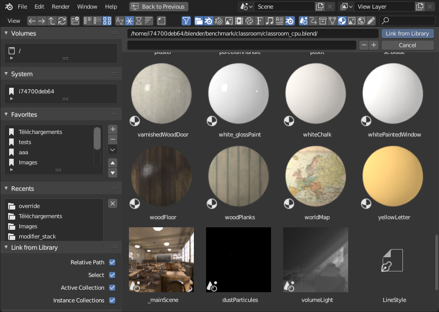 在追加或关联数据块时浏览其他 blend 文件的内容(参见关联库)。