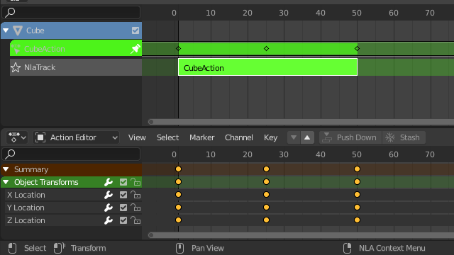 Enters Tweak Mode for the selected strip's action, making its keyframes available for editing. Mutes any tracks above the current one so that they don't influence the animation while making changes.