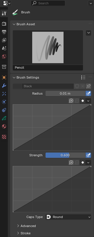 Adjusts the radius based on the stylus pressure when using a Graphics Tablet. The gradient of the pressure can be customized using the curve widget.