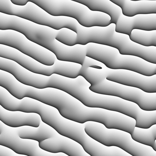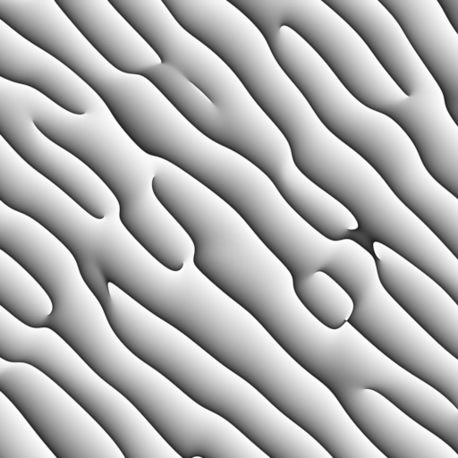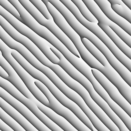 The following table demonstrates different outputs of the node with different parameters. As can be seen, the noise is visually characterized by interleaved bands that are generally oriented in a specific direction. But the Anisotropy parameter can be decreased below 1 to make the bands more random in directions. The Frequency parameter determines the number of bands perpendicular to the direction of the noise. However, the Scale parameter can also be used to globally increase the number of bands, so consider increasing the scale first since high frequency noise can suffer from low contrast and limited interleaving of bands.