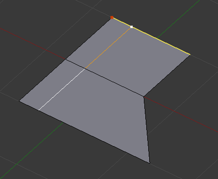 在 均匀 模式下,当前移动操作遵循的边线会标记显示为黄色,匹配一侧的顶点标记为放大的红色点。循环边的滑移被限制在该边线的长度范围内。在鼠标移动的过程中,标题栏的长度指示会发生改变,显示着边在当前长度范围内的位置。