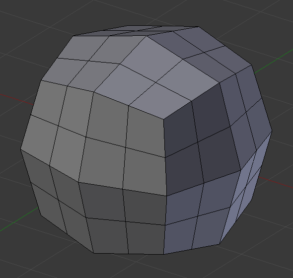 如果该面是四边形,相对的两条边将以上文方式细分。然后,“中间” 的边经细分后,将如上文中仅选中一条边的情形一样影响新的 “小四边形”。