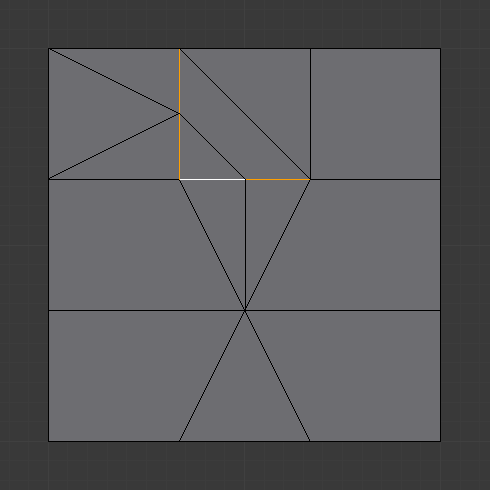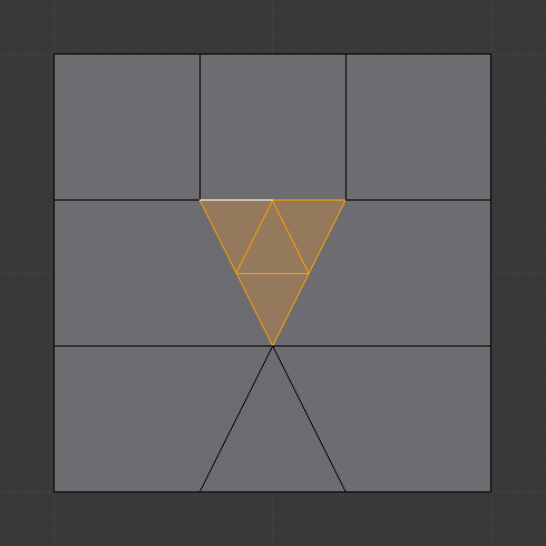 选定的边被细分,然后在新顶点和现有外侧顶点之间创建新边。这样就形成了两个三角形和一个四边形。