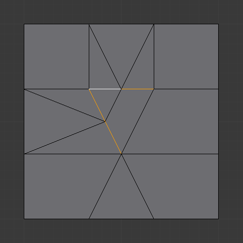 当只选择三角形或四边形的一条边时,该面将分别变成一个四边形或多边形面。如果 创建多边形 选项被禁用,面将被分割成三角形。