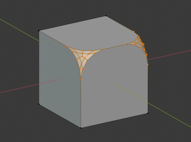 仅靠近顶点的区域会倒角,边不受倒角影响。