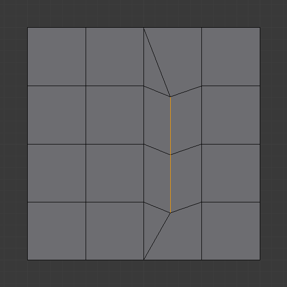 断离顶点并填充¶ 参考 模式: 编辑模式 菜单: 顶点 ‣ 断离顶点并填充 快捷键: Alt-V “断离并填充” 的工作原理和上面的 “断离” 工具一样,但它不会留下孔洞,而是用几何体来填充空隙。 选中的边。¶ 断离并填充的结果。¶
