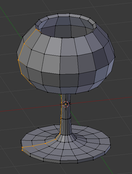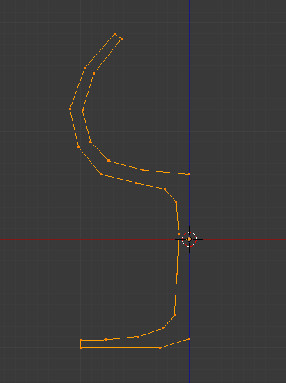 通过进入编辑模式,将游标放置在配置文件的中心,并选择中心的一个顶点,然后用 将 3D 游标锁定到该位置。(图 旋绕之前,编辑模式下杯子轮廓的顶视图。)从俯视图显示酒杯轮廓,游标定位正确。
