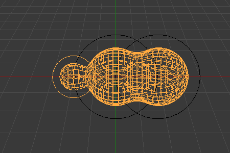 除了能够在同一个族中有几个融球之外,还可以在单个物体中有几个融球基本体(只是在编辑模式中添加更多的融球基本体)。每个融球都是一个元素,都具有自己的形状、编辑环(在视图中)和设置。