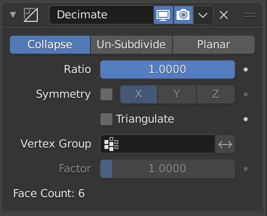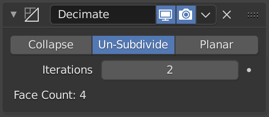 可以认为是反向的细分。它试图删除细分操作的结果。它主要用于基于网格的拓扑(不提供不均匀的几何形状)的网格。如果在细分操作后又做了一些编辑操作,结果可能在意料之外。
