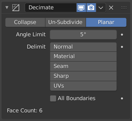启用后,所有沿着边界面的顶点会精简掉。这样可以在用较高的 角度限制 值时可以得到更好的结果。