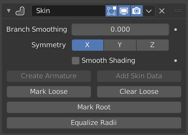 该修改器需要原始网格中的一组特定数据才能正常工作。这些数据可以让你定义每棵树的根顶点,哪些是松散的,以及每个顶点处蒙皮的大小(半径)。输入顶点的半径可以在编辑模式下用 调整蒙皮尺寸 单独缩放。