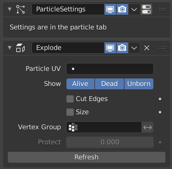 此演示视频展示了一个添加了粒子系统 和 爆破 修改器的立方体。(blend 文件)。
