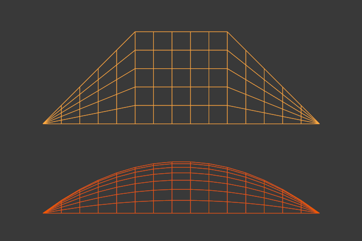与曲线一样,曲面可以在两个方向上独立闭合(循环)或打开,使您可以轻松创建管形、圆环形或球形,并且可以在 编辑模式 中将它们视为 "实体"。这可以根据每个插值轴设置。
