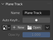 Field to select or create an image which will be displayed inside the plane track. This image is for preview purposes in the Movie Clip editor only. To include it in your final render, see Plane Track Deform node.