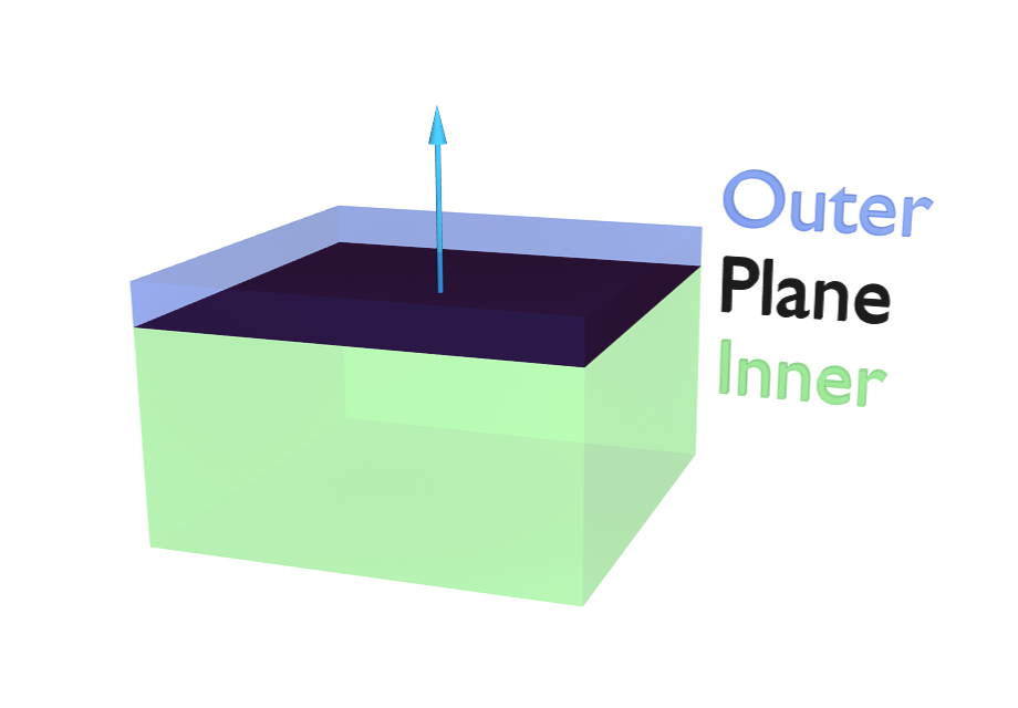 在每个面的内侧和外侧添加的填充距离,用来防止交叉。软体将离碰撞体表面此距离处停下来。外侧和内侧由平面法线决定,如图片中蓝色箭头所示 软体顶点与平面相撞。。