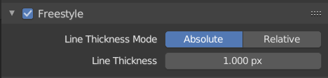 Freestyle 功能可通过勾选 渲染 页签下的 Freestyle 面板前端的复选框来启用。