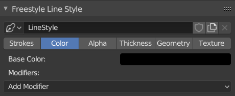 颜色¶ 在此选项卡中,您可以控制笔触的颜色。 线条样式:颜色。¶ 基础色此线条样式的基色。 修改器¶ 通用选项¶ 混合The modifier output can be mixed with the base property using the usual methods (see for example the Mix compositing node). 影响此修改器的结果对当前属性的影响程度。 颜色渐变每个修改器都有颜色渐变部件,它将属性映射到笔画颜色。 类型¶ 沿笔画 折痕角 曲率 3D 到摄像机的距离 到物体的距离 材质 噪波 切向 (正切)