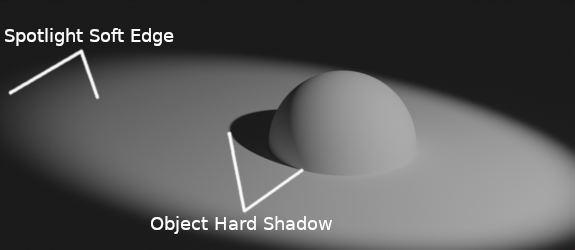 渲染显示软边聚光灯区域和锐/硬对象阴影。¶