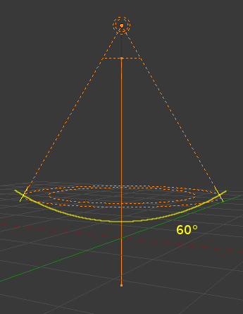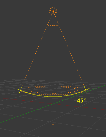 聚光灯外锥体的大小,它在很大程度上控制着聚光灯覆盖的圆形区域。此滑块实际上控制照明锥顶部的角度,并且可以介于(1.0 到 180.0)之间。